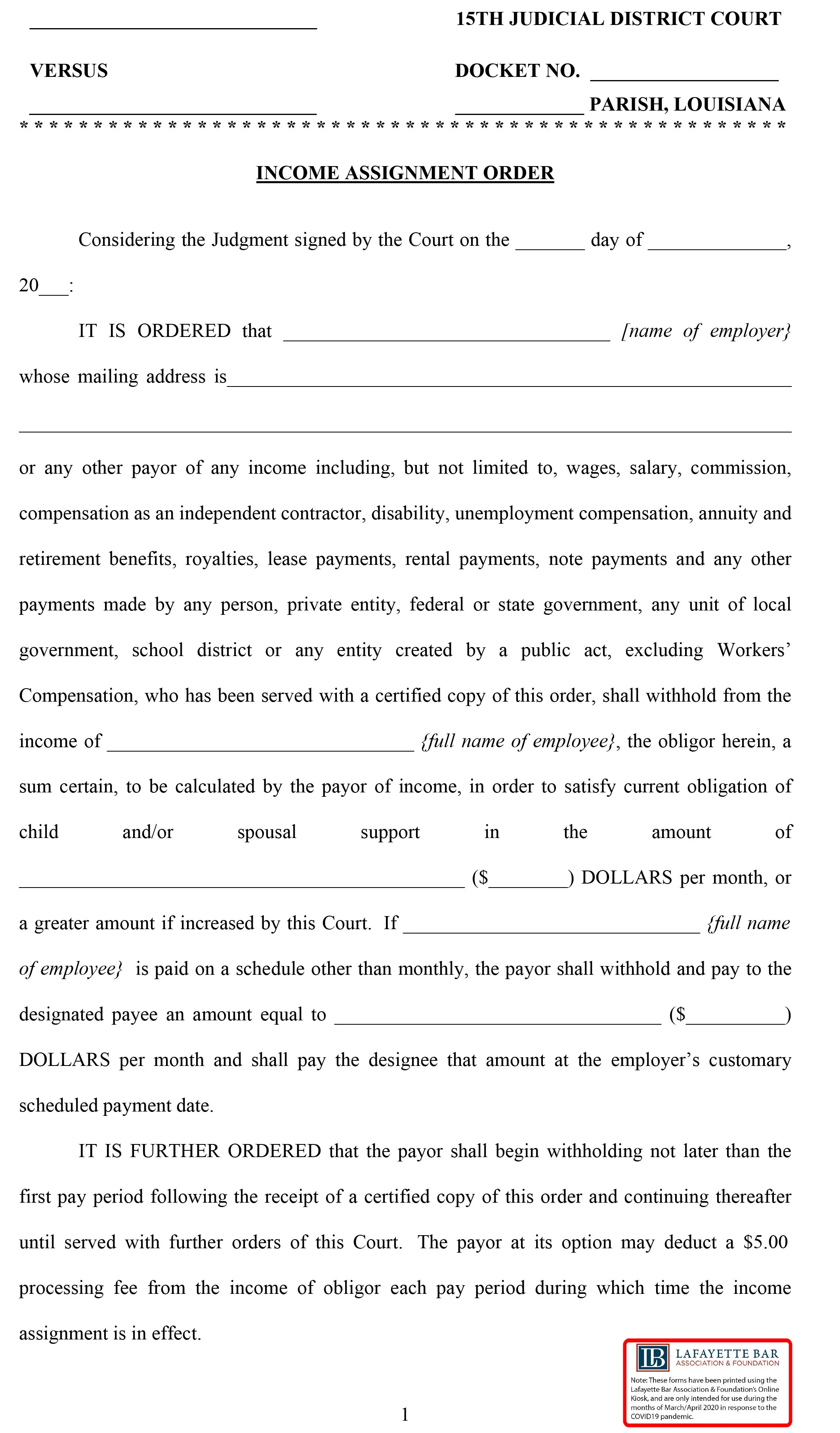 All forms are made with the intention of being filed in Lafayette Parish. If you are not filing within Lafayette Parish, you may put one line through “Lafayette” and above it write in the name of the parish you are filing in above.