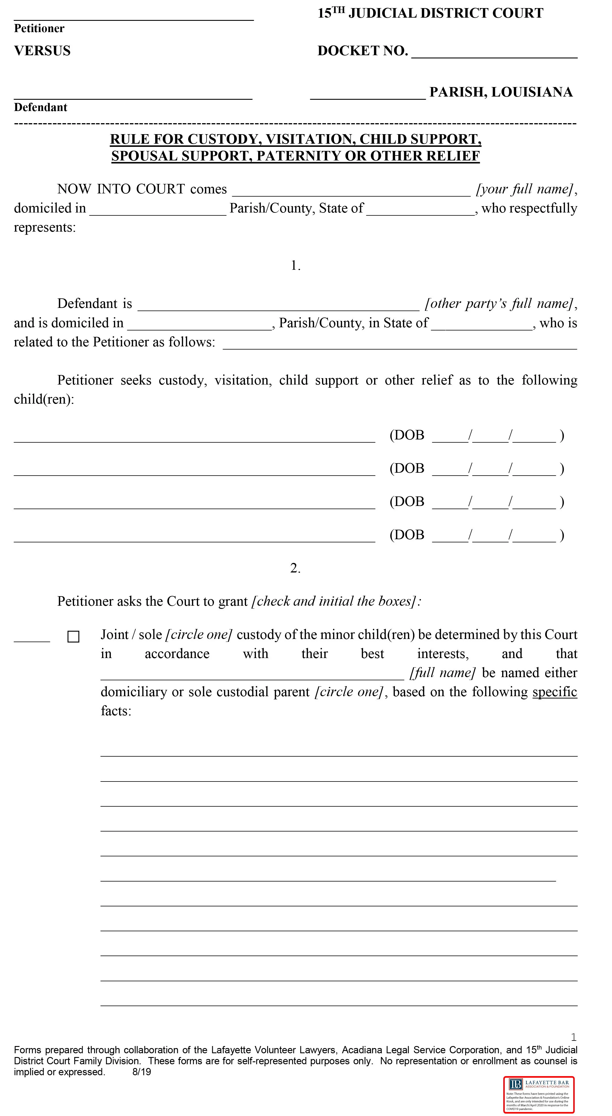 If you have an open case or judgement concerning this matter in another parish, state or country, you should call the Clerk of Court’s office in the parish you intend to file to confirm that you are able to file forms before proceeding.
